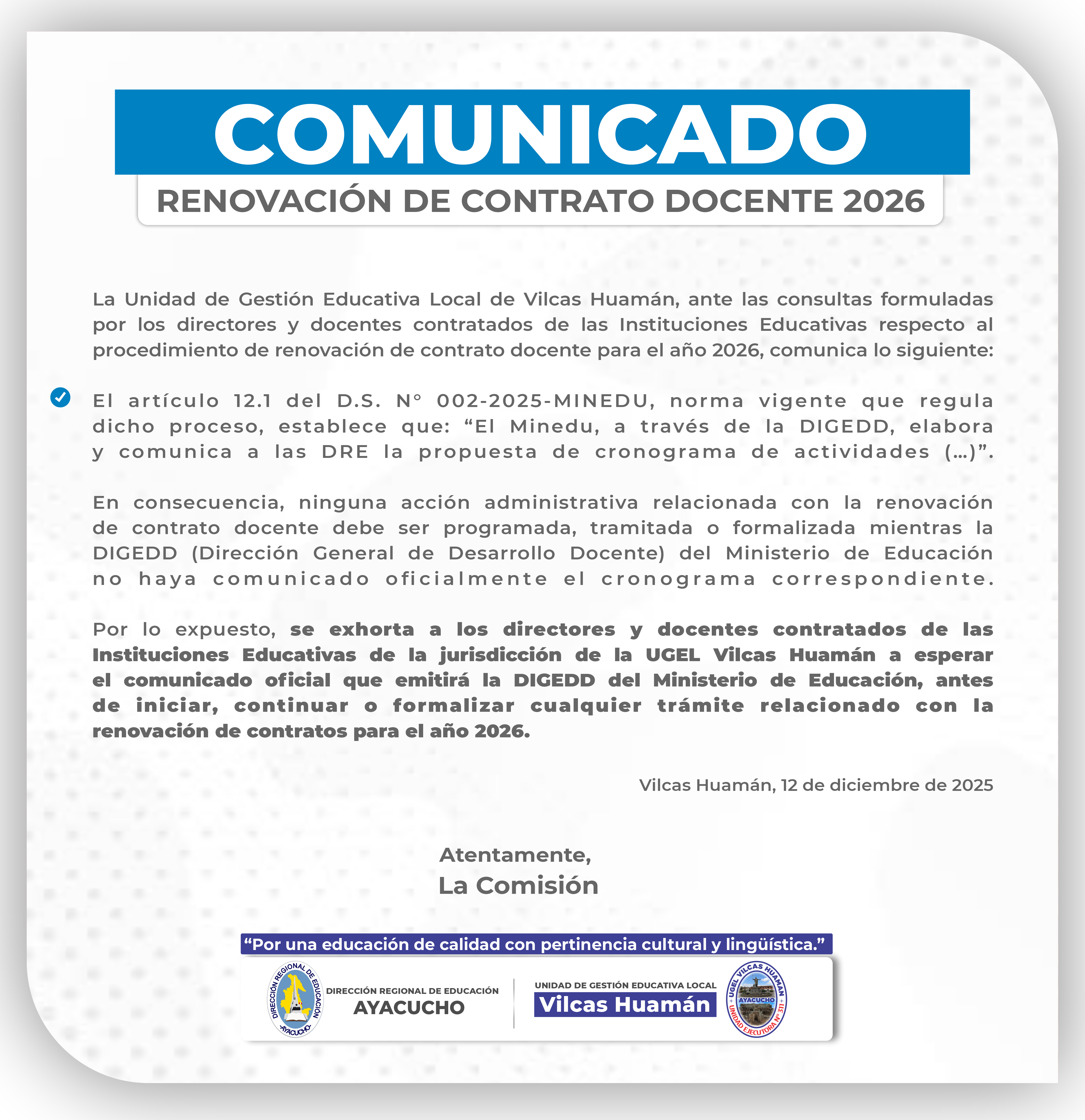 © Unidad de Gestión Educativa Local de Vilcas Huamán